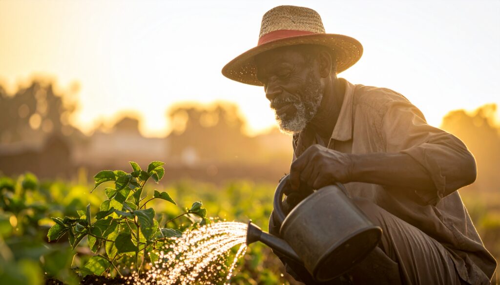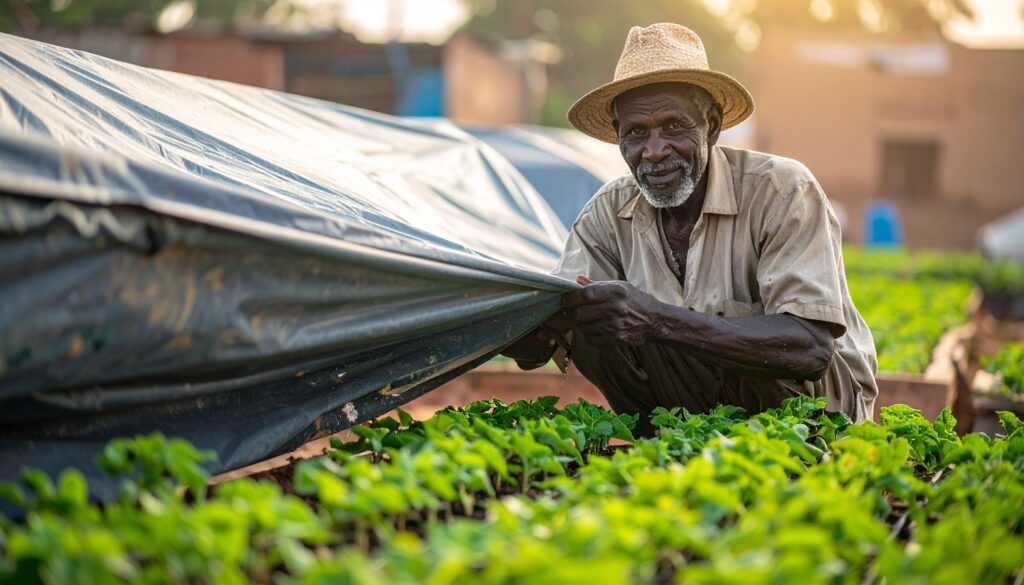 Découvrez comment Moussa, vieux maraîcher malien, garde son jardin vert en saison sèche grâce au paillage, à un arrosage bien géré et à des pépinières protégées. Un article pédagogique inspiré